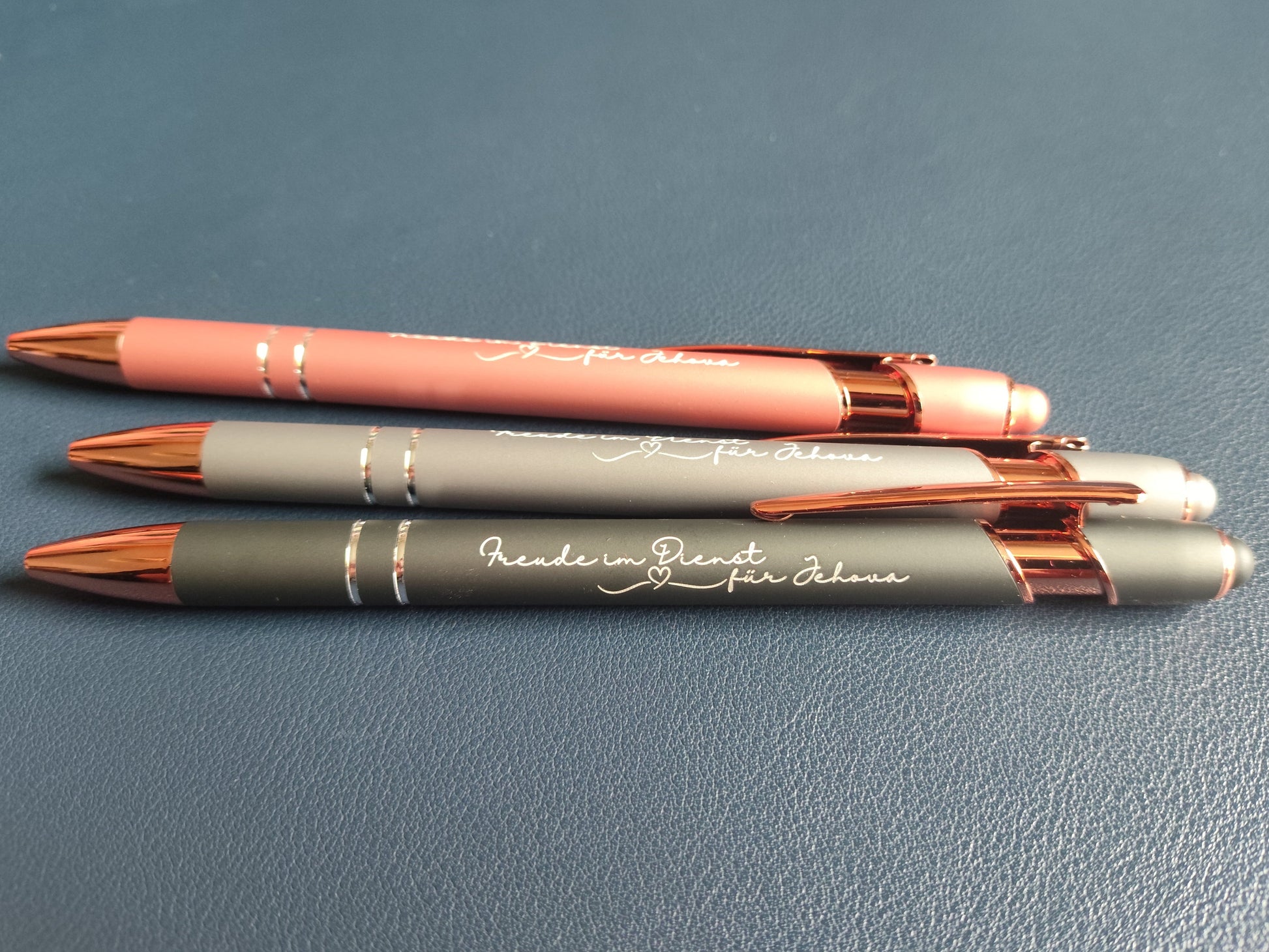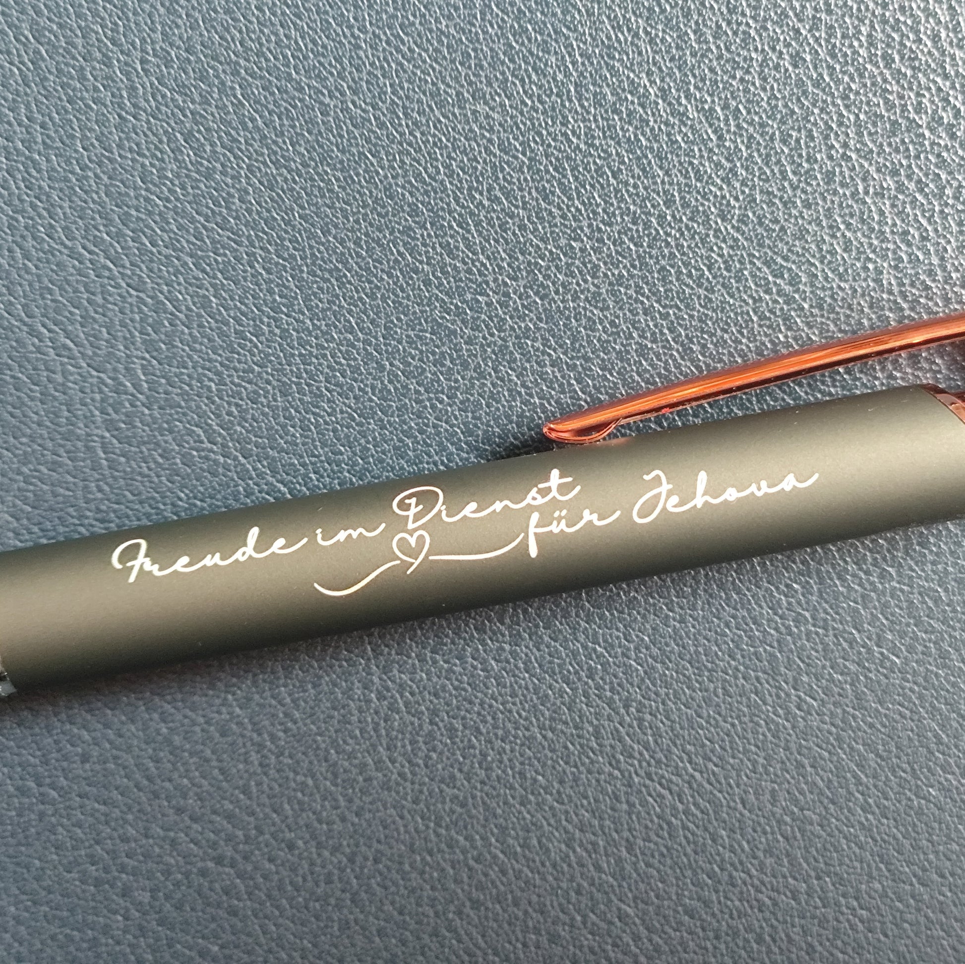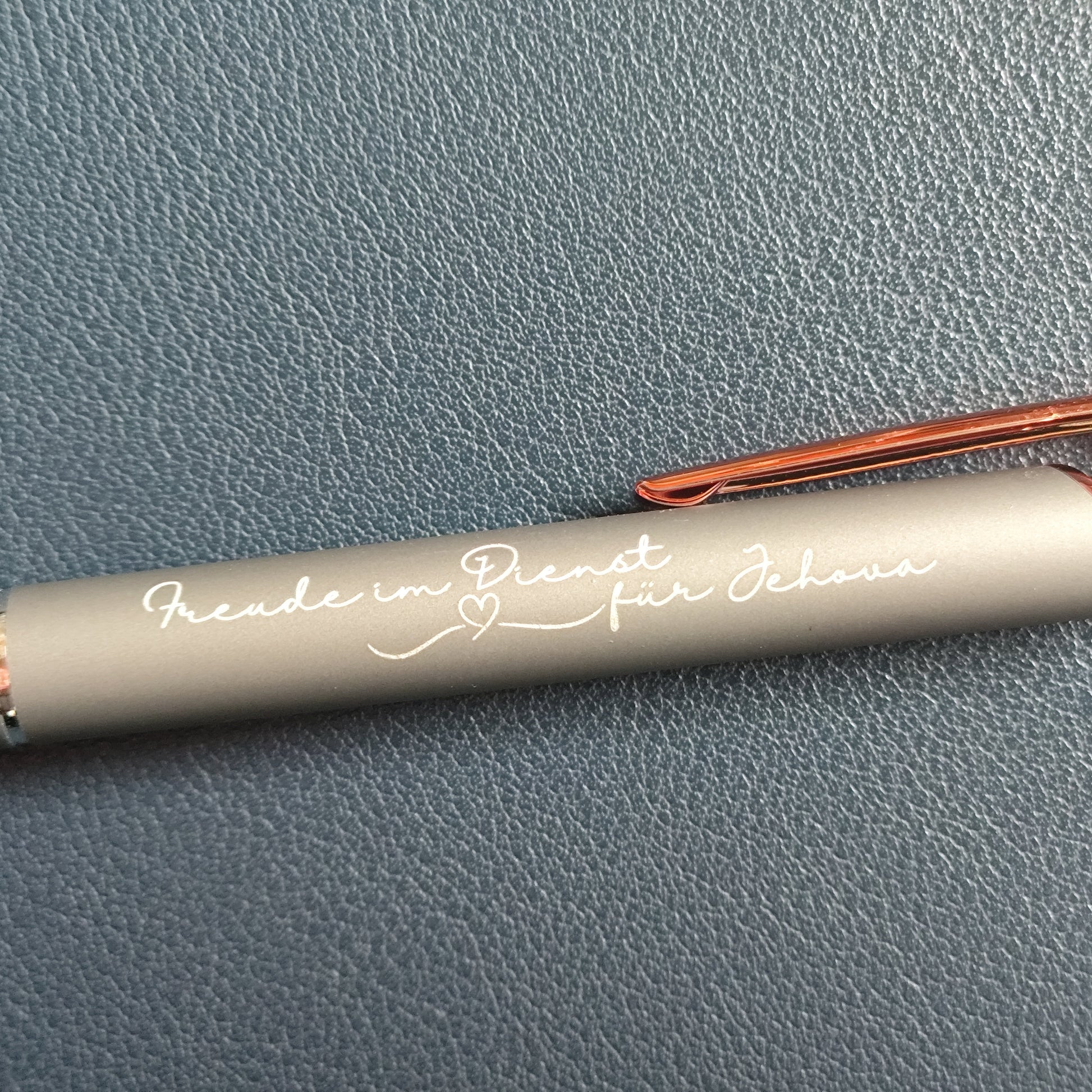 Kugelschreiber mit eleganter Gravur: „Freude im Dienst für Jehova“